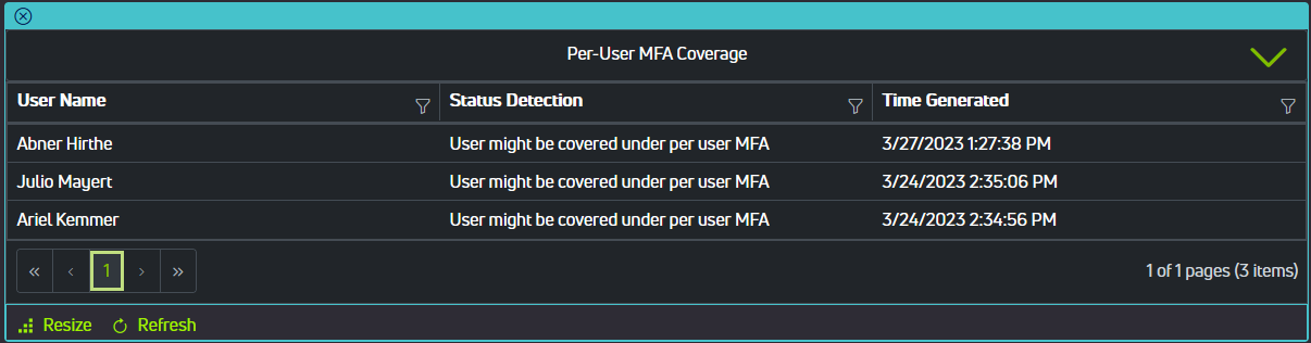 In the Azure portal it is difficult to determine which takes precedence of per-user MFA or conditional access policy enforced MFA, but it is important to consider that per-user MFA rules supersede MFA rules imposed by conditional access policies. Per-user MFA enforcement status may have to be manually disabled in the Azure portal by a global administrator in order for your MFA conditional access policies to apply properly. On the same page, Microsoft also provides a PowerShell script to do this for all users to assist in converting to conditional access based MFA. One component of Senserva's Conditional Access and MFA workbook provides a report on users that may be covered by per-user MFA so you can easily investigate these accounts to assist with conversion to conditional access.