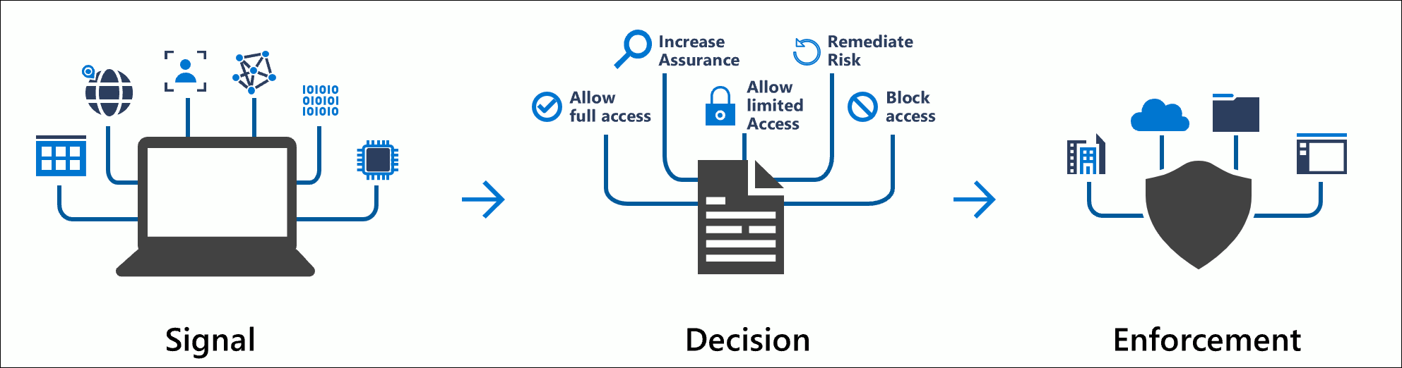 These assignments (signals) are then used to make decisions about resource access, such as: